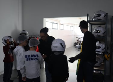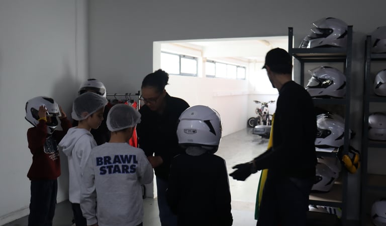Antes de entrarem em pista, todas as crianças passam por um processo cuidado e acompanhado pelo nosso STAFF: